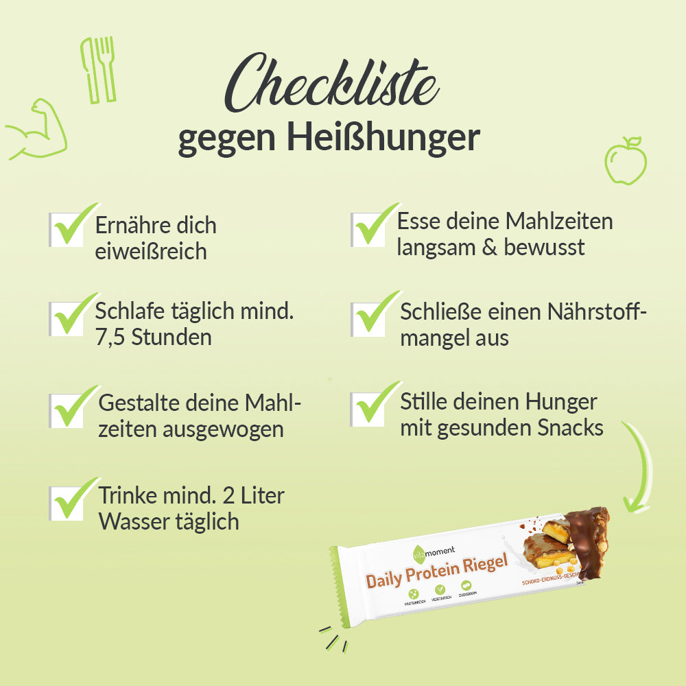 Sei vorbereitet auf den Fall, dass du Heißhunger bekommst.