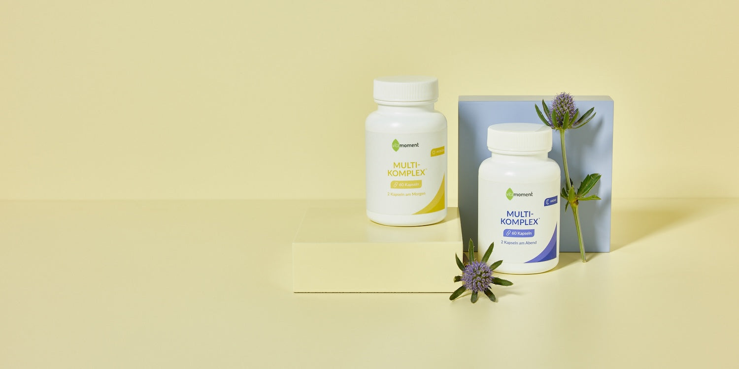 Du suchst nach einer Lösung, um die Gesundheit deiner Haut bzw. Kopfhaut, Haare und Nägel zu unterstützen? Der VitaMoment Haut-Haare-Nägel-Komplex vereint hochbioverfügbares Zink und Jod mit der ganzen Palette an B-Vitaminen sowie Vitamin C. Darüber hinaus enthält er L-Methionin, Cholin, Selen sowie pflanzliche Extrakte aus Propolis, Olivenblatt, Bambus, Knoblauch, Hagebutte und Schwarzkümmel.