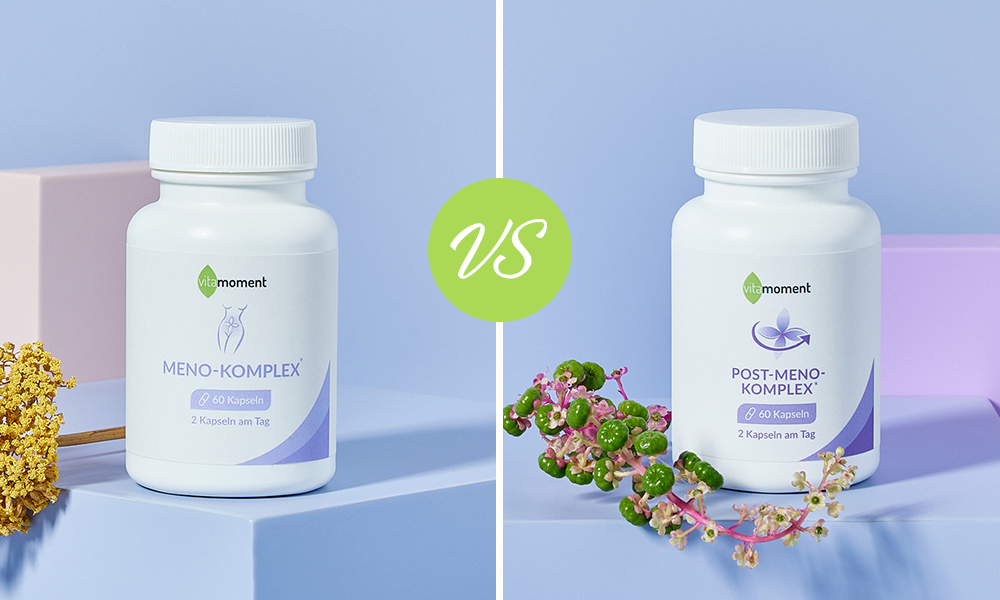 Des Weiteren kannst du Kräuterteezubereitungen mit Hopfen, Yamswurzel, Schafgarbe oder Mönchspfeffer in deinen Alltag integrieren. Alternativ kannst du diese Pflanzenextrakte praktikabel in einem Kombi-Präparat einnehmen. Du findest bei uns den Meno-Komplex, ein Präparat, das wichtige Nährstoffe sowie hormonunterstützende Pflanzenextrakte enthält: