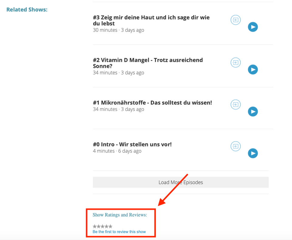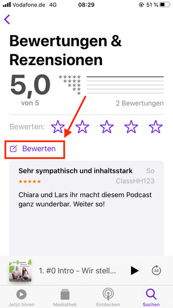 Schritt 2: Klicke auf den Podcast und scrolle nach unten bis zu den Bewertungen.