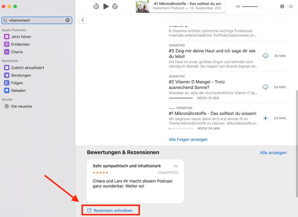 Der VitaMoment Podcast - so findest, abonnierst und bewertest du ihn in