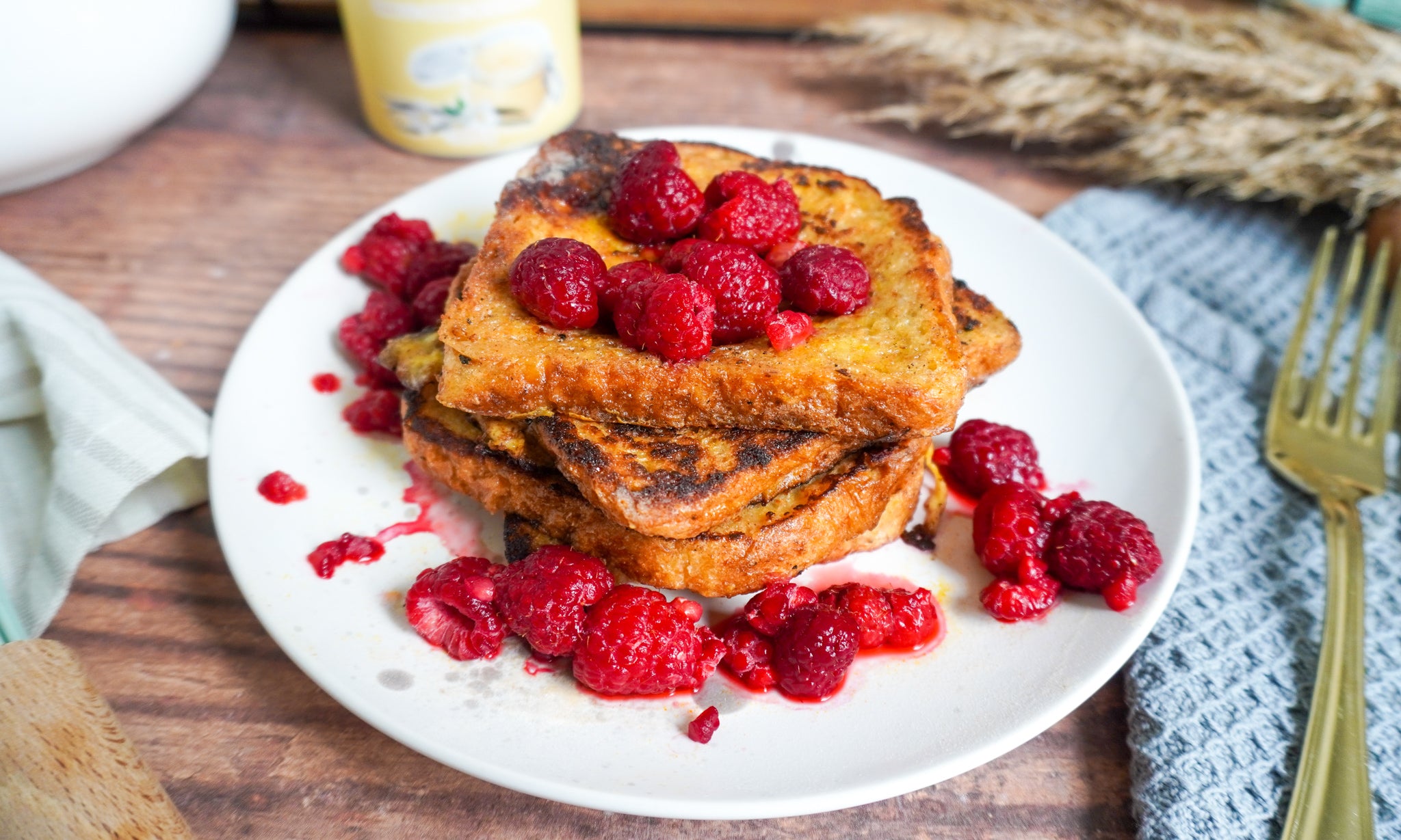 4Auf einem Teller mit Himbeeren servieren und nach Bedarf mit Daily Flavour bestreuen.