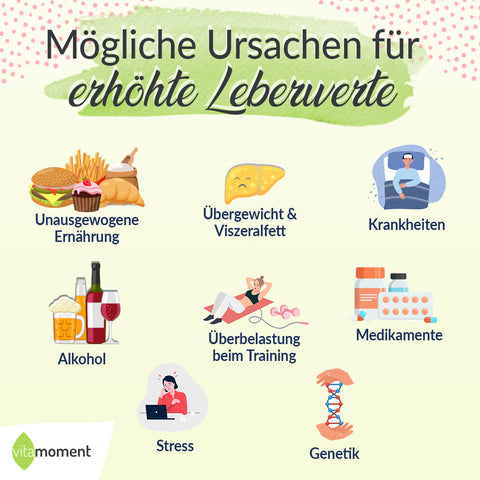 Auch grippale Infekte, Virusinfektionen (z.B. das Epstein-Barr-Virus oder Hepatitis-Viren) und andere Erkrankungen können die Leberwerte erhöhen. Bei erhöhten Werten um mehr als das Zweifache des Normbereichs sollte einer weiterführenden Diagnostik nachgegangen werden.