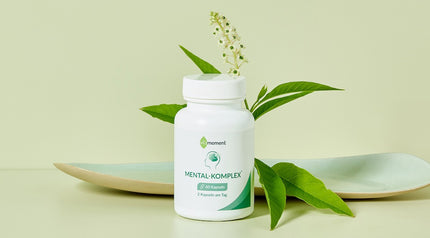 In unserem VitaMoment Mental-Komplex findest du eine einzigartige Kombination aus Vitaminen und Pflanzenextrakten. Diese können deine geistige und körperliche Leistungskraft unterstützen, Stresssymptome lindern und für mehr Ausgeglichenheit im Alltag sorgen. B-Vitamine tragen zu einer normalen psychischen Funktion sowie zur Verringerung von Müdigkeit und Erschöpfung bei.
