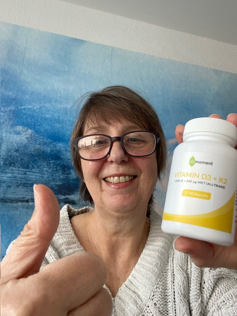 Mein Mann hatte gesundheitliche Probleme – er wurde fahrig und unkonzentriert. Nach einem hilfreichen Gespräch bei VitaMoment bekam ich Tipps, unter anderem Vitamin D. Später zeigte das Blutbild deutliche Verbesserungen. Mein Mann spürt selbst, wie gut ihm die Vitamine tun. Ich bin mittlerweile absolut überzeugt von den Produkten, auch wenn ich anfangs wegen des Preises skeptisch war. Lieber investiere ich in unsere Gesundheit als in unnütze Dinge.