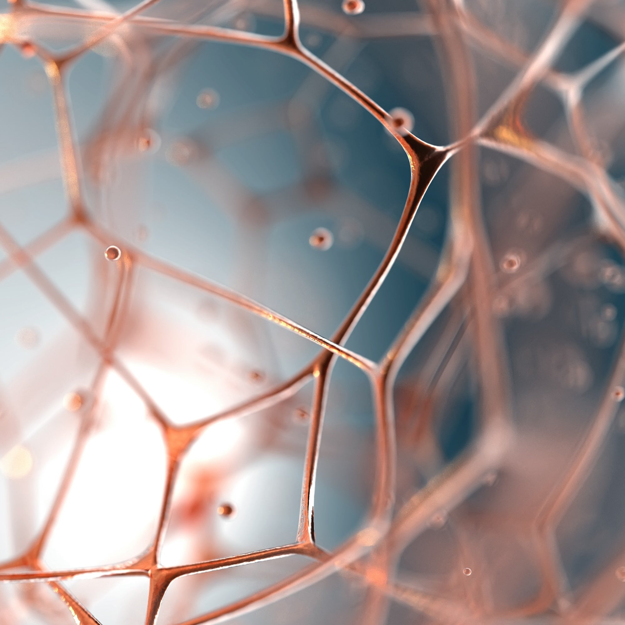 Das Bindegewebe bildet das stützende Netz unseres Körpers, das Organe und Gewebe wie feine Fäden eines Spinnennetzes miteinander verknüpft und festigt. Es sorgt dafür, dass alles an seinem Platz bleibt, während es gleichzeitig die notwendige Flexibilität bewahrt, die unser Körper für seine Bewegungen und Anpassungen benötigt. Wie ein Gerüst trägt es zur Struktur des gesamten Organismus bei und spielt eine unverzichtbare Rolle in der Vernetzung und Unterstützung der verschiedenen Körpersysteme.