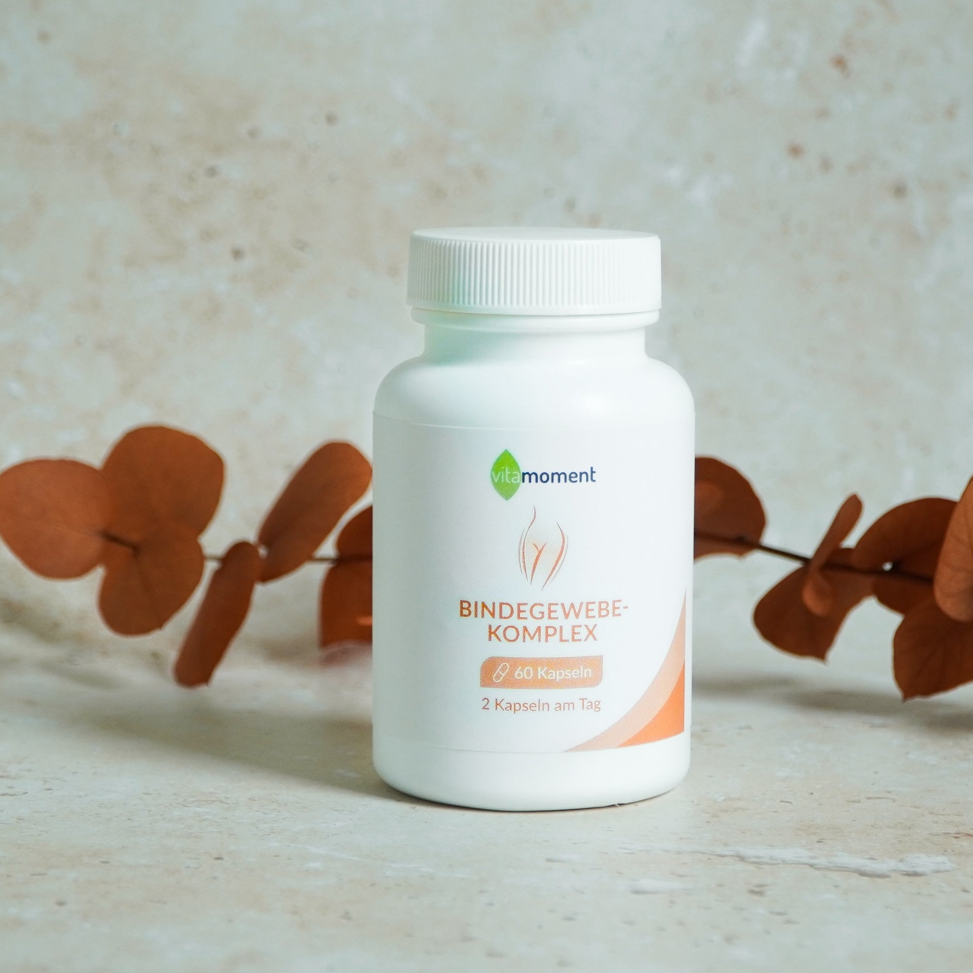 Ein gesunder Lebensstil mit ausreichend Bewegung, der richtigen Ernährung, viel Wasser und Methoden zum Stressabbau, ist entscheidend für ein starkes Bindegewebe. Zusätzlich können natürliche Helfer unterstützen, die unser Produktentwicklungs-Team für dich im Bindegewebe-Komplex kombiniert hat: Kupfer trägt zur Erhaltung von normalem Bindegewebe bei, während Mangan zu einer normalen Bindegewebsbildung beiträgt. Beide Spurenelemente tragen außerdem zum Schutz der Zellen vor oxidativem Stress bei. Pflanzenextrakte aus Brennnesseln (Urtica dioica), Ackerschachtelhalm (Equisetum arvense) und Wacholderbeeren (Juniperus communis) werden bereits seit Jahrtausenden in der Naturheilkunde eingesetzt.