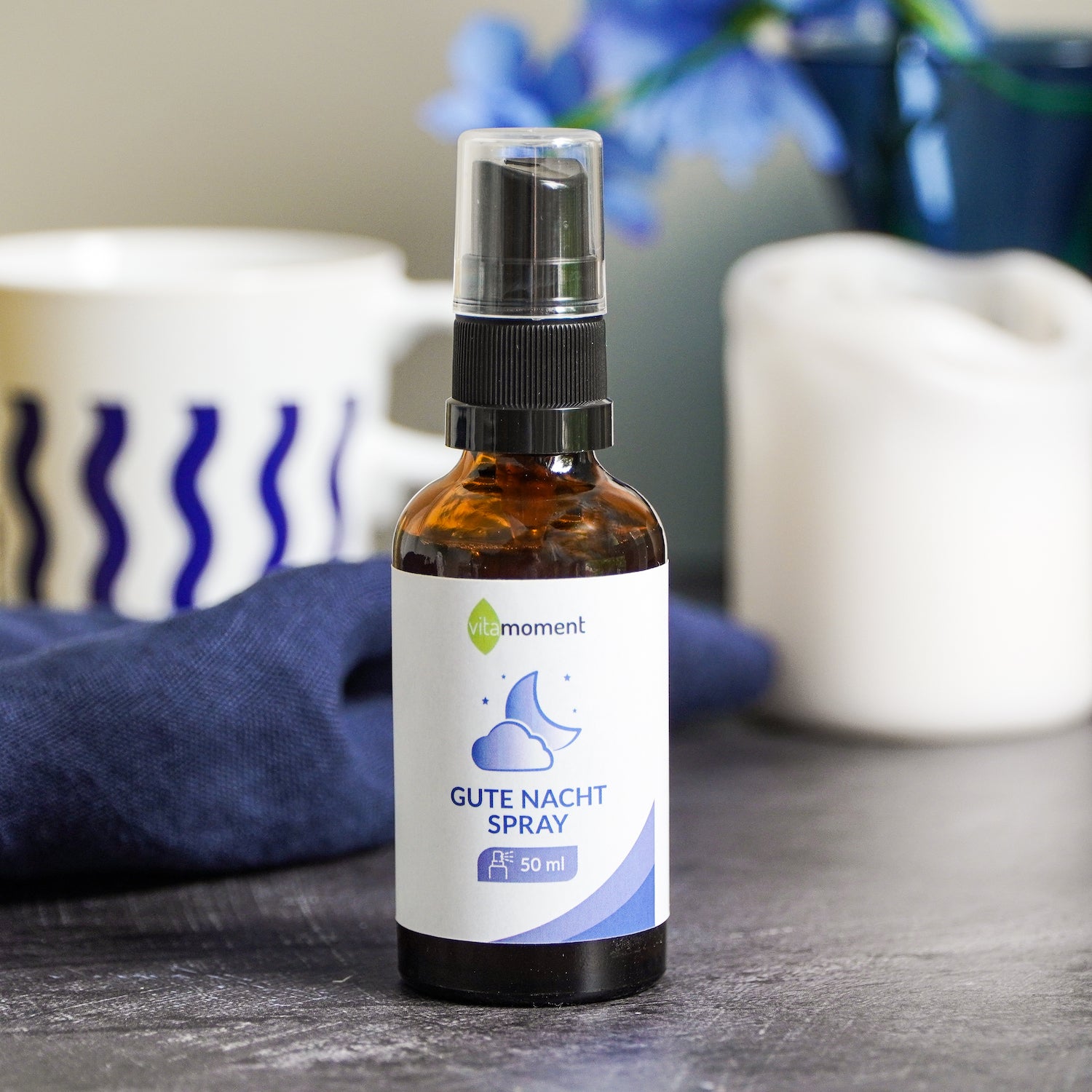 Das Gute Nacht Spray von vitamoment ist das beste Präparat, welches das Ein- und Durchschlafen zuverlässig unterstützt! Ich benutze es immer wieder mal, wenn ich es brauche und ein...fach nicht zur Ruhe komme. Von mir absolute Kaufempfehlung; wenn auch etwas teuer, es ist jeden Cent/Euro wert. 😀