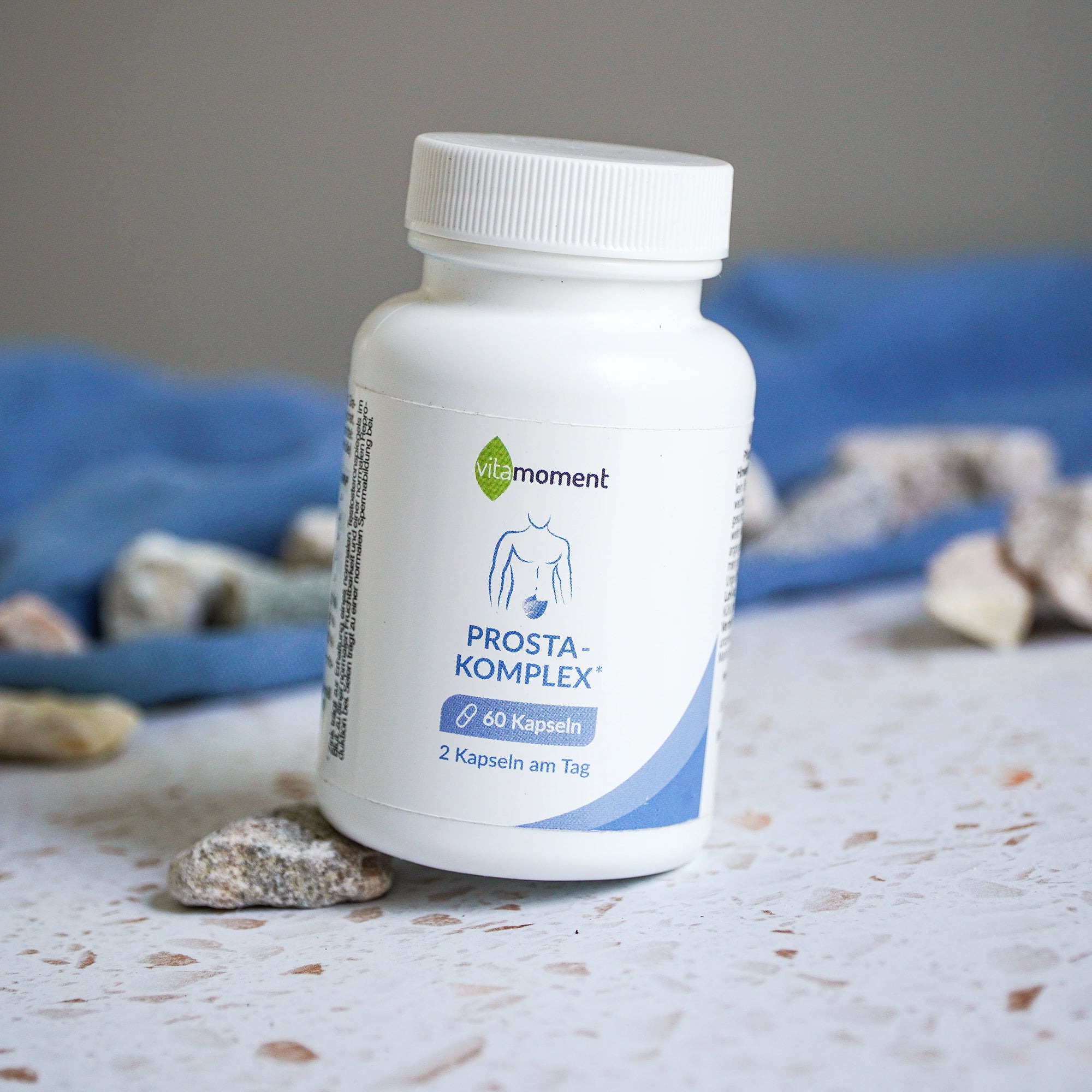 Zusätzlich können die richtigen Nährstoffe die Gesundheit und das Wohlbefinden von Männern positiv beeinflussen. Wir haben diese für dich in unserem Prosta-Komplex kombiniert: Selen trägt zu einer normalen Spermabildung bei. Zink trägt unter anderem zu einer normalen Fruchtbarkeit, einer normalen Reproduktion, zum Erhalt eines normalen Testosteronspiegels im Blut, zu einer normalen Eiweißsynthese sowie zu einer normalen Funktion des Immunsystems bei. Biotin (Vitamin B7) trägt zu einem normalen Energiestoffwechsel bei. Ergänzt werden diese wichtigen Nährstoffe durch natürliche Pflanzenextrakte aus Kürbiskernen, Sägepalme, Brennnessel (Urtica dioica) und Granatapfel.