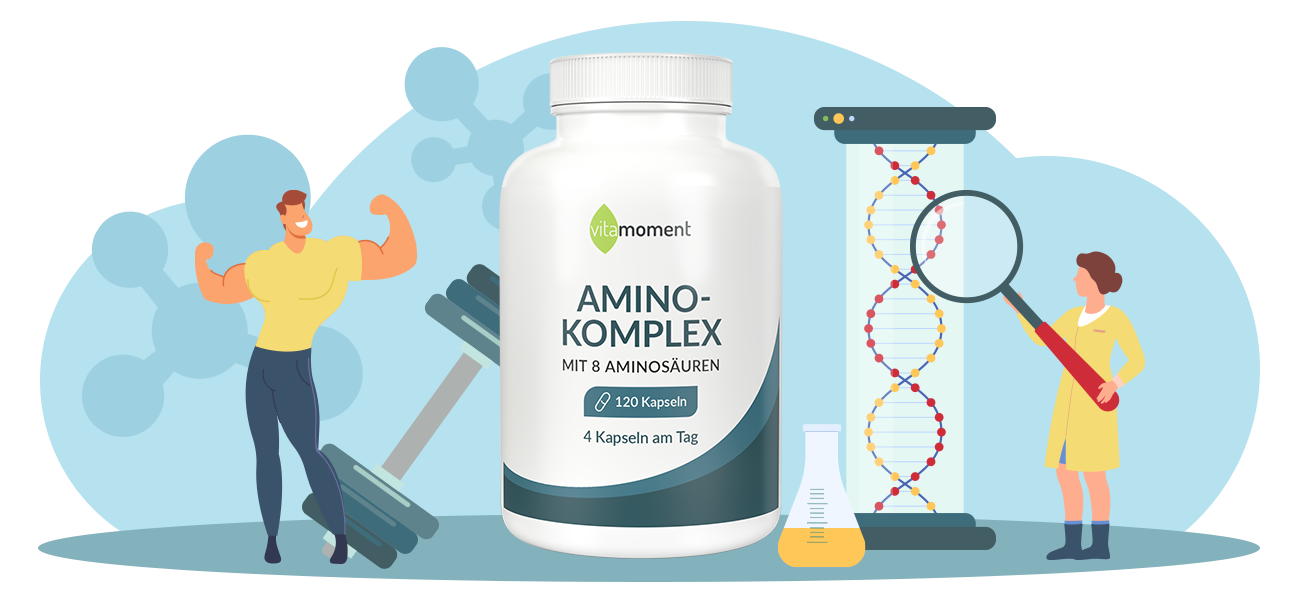 Der Amino-Komplex von VitaMoment steht dir genau hierbei zur Seite – damit du deinen Körper einfach und gezielt mit allen 8 essentiellen Aminosäuren versorgst und dich im Alltag vital, leistungsfähig und gestärkt fühlst.