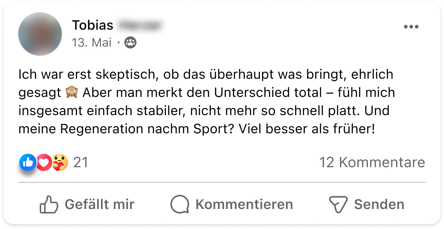 Meine Frau und ich nutzen die Produkte von VitaMoment schon seit längerer Zeit und haben sie fest in unseren Alltag integriert. In Kombination mit eiweißbetonter Ernährung helfen sie uns, den Nährstoffhaushalt im Gleichgewicht zu halten. Das Ergebnis: mehr Energie, besseres Wohlbefinden und ein echter Zugewinn an Lebensqualität. Für uns jeden Tag aufs Neue wertvoll.