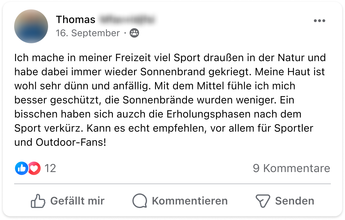 Disclaimer: Dieses Produkt ist nicht zur Diagnose, Behandlung, Heilung von oder zur Vorbeuge vor Krankheiten bestimmt. Die Ergebnisse können variieren / sind eventuell nicht typisch. Bewertungen oder Testimonials sind individuelle Erfahrungsberichte unserer Kunden. Diese Informationen stellen keine medizinische Beratung dar und dürfen auch nicht als eine solche verstanden werden. Sprich bitte mit deinem Arzt, bevor du dein regelmäßiges, ärztlich vorgeschriebenes Behandlungsverfahren änderst. Nahrungsergänzungsmittel sind kein Ersatz für eine ausgewogene und abwechslungsreiche Ernährung und eine gesunde Lebensweise. Das Bildmaterial unserer Kundenfeedbacks wurde aus Gründen des Persönlichkeitsrechts z.T. lizensiert erworben und entspricht nicht immer dem echten Erscheinungsbild.