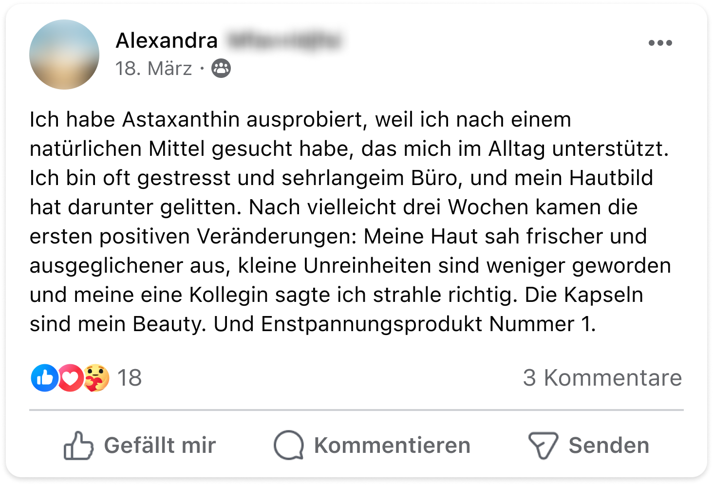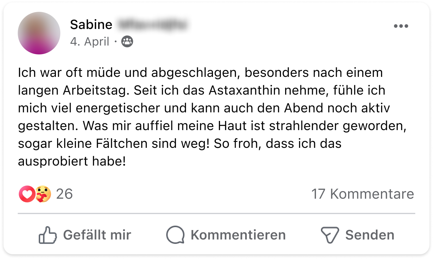 Verena's Erfahrungen mit Astaxanthin von VitaMoment