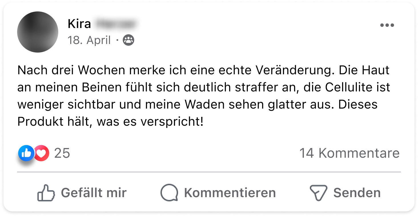 - Du genießt, wie deine Haut glatter und straffer wirkt – und die Cellulite deutlich weniger sichtbar ist.