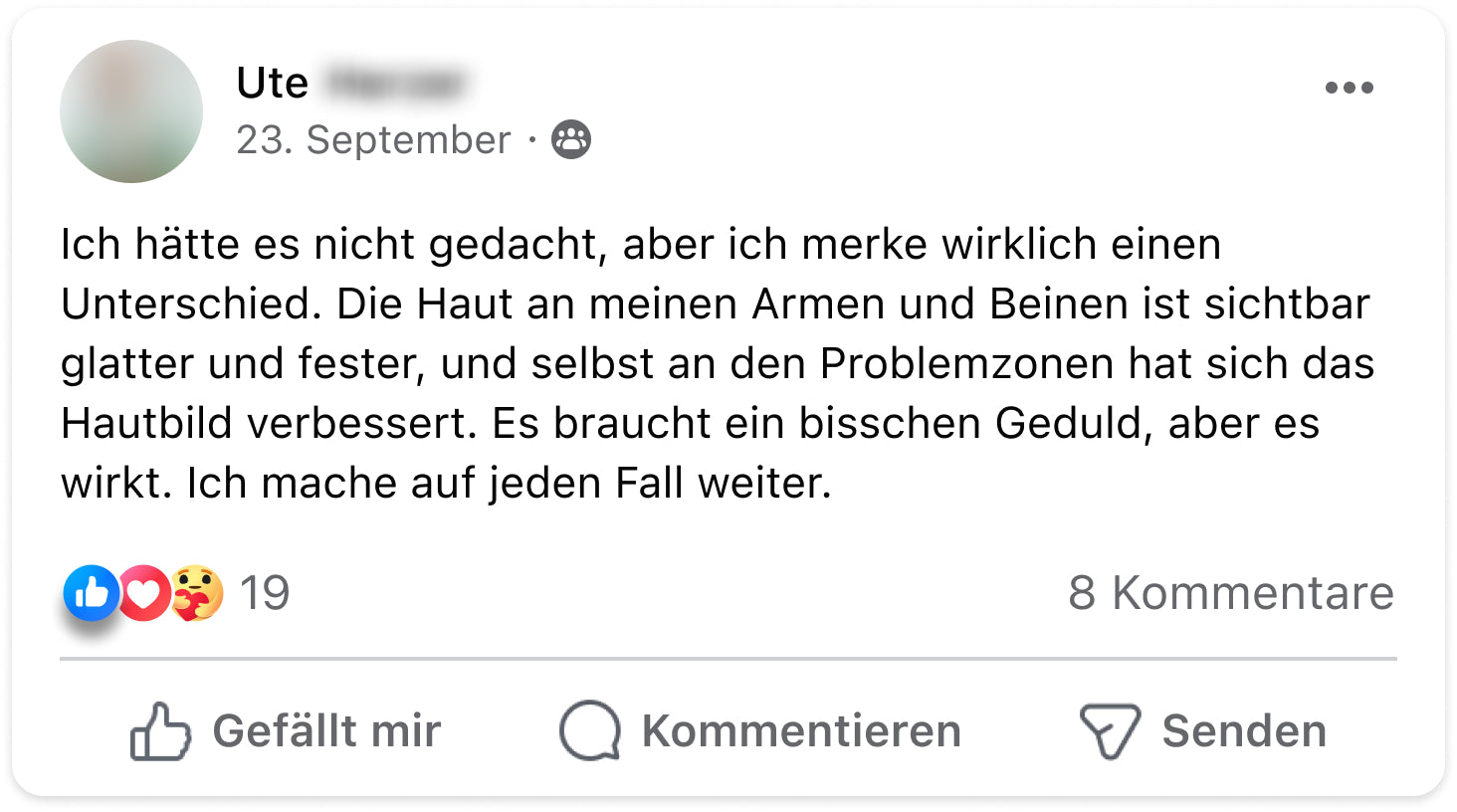 - Du siehst, wie sich deine Haut von innen heraus regeneriert – und du dich endlich wieder wohl in deiner Haut fühlst.