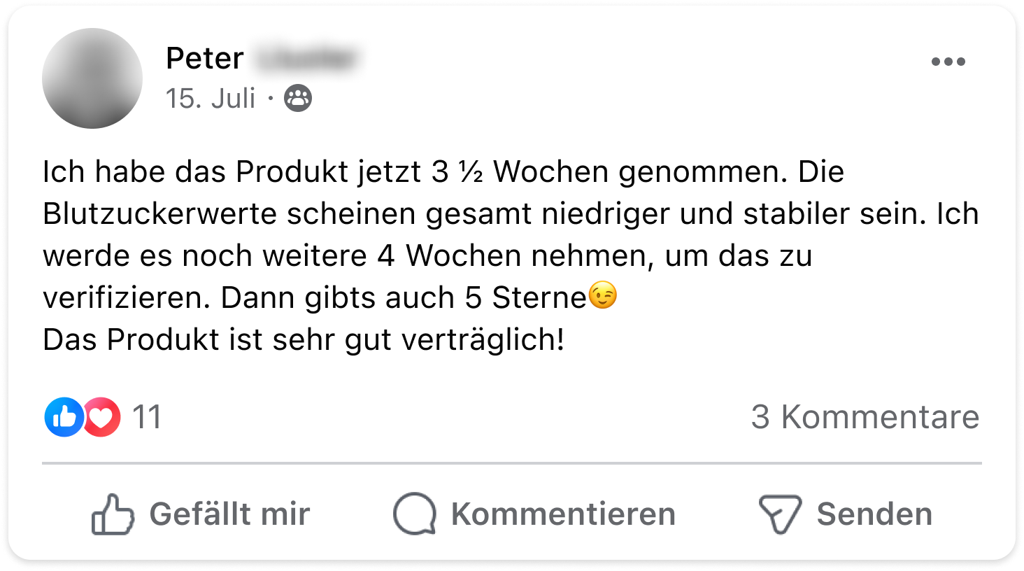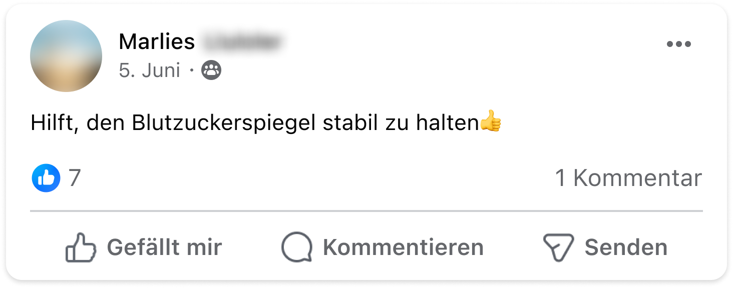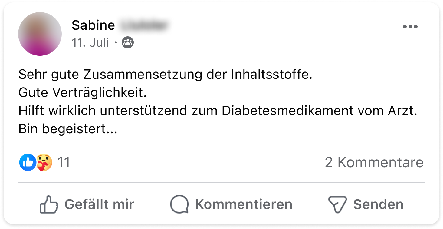 Ich bin total begeistert. Nach etwa zwei Wochen habe ich mal wieder getestet, ich bin seit der Einnahme immer im grünen Bereich. Vorher ca 2 x pro Messtag im roten Bereich. Langzeitzucker wird Ende September gemessen, das wird spannend.