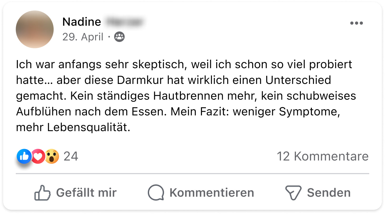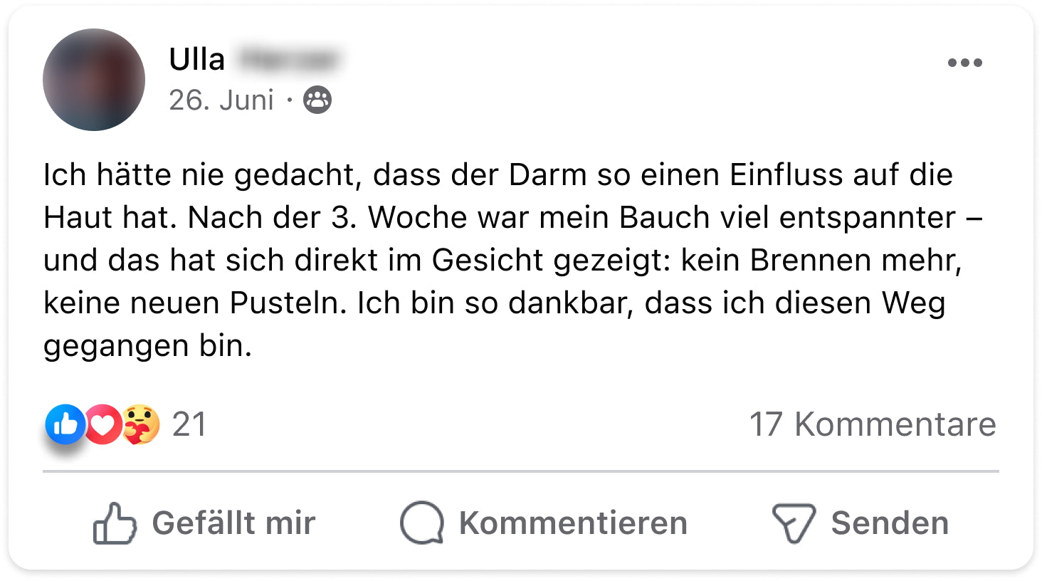 Ich habe seit Jahren das Problem, dass ich ständig mit Erkältungskrankheiten kämpfe, dazu Hautprobleme. Ich habe Schuppenflechte, die sich seit Jahren in akuten Schüben zeigen und die ich einfach nicht in den Griff bekommen habe. Jetzt nach der Darmkur ist sie noch da, aber bei weitem nicht mehr so ausgeprägt. 🙌 Ich werde die Kur auf jeden Fall wiederholen.