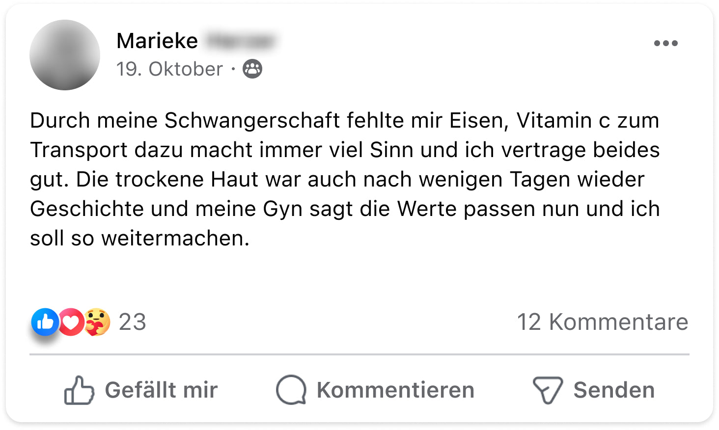- Gezielte, niedrigere Dosierung, da eine zu hohe Menge Eisen schlecht absorbiert wird.