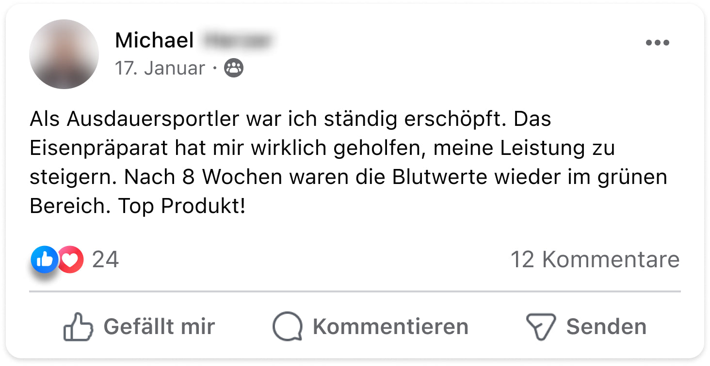 Endlich habe ich ein Eisenpräparat gefunden, das wirklich hilft! Die Verträglichkeit ist ausgezeichnet und bereits nach wenigen Wochen spüre ich einen deutlichen Unterschied. Meine Müdigkeit ist verschwunden, und ich fühle mich wieder voller Energie. Ein echtes Qualitätsprodukt, das ich nur weiterempfehlen kann!