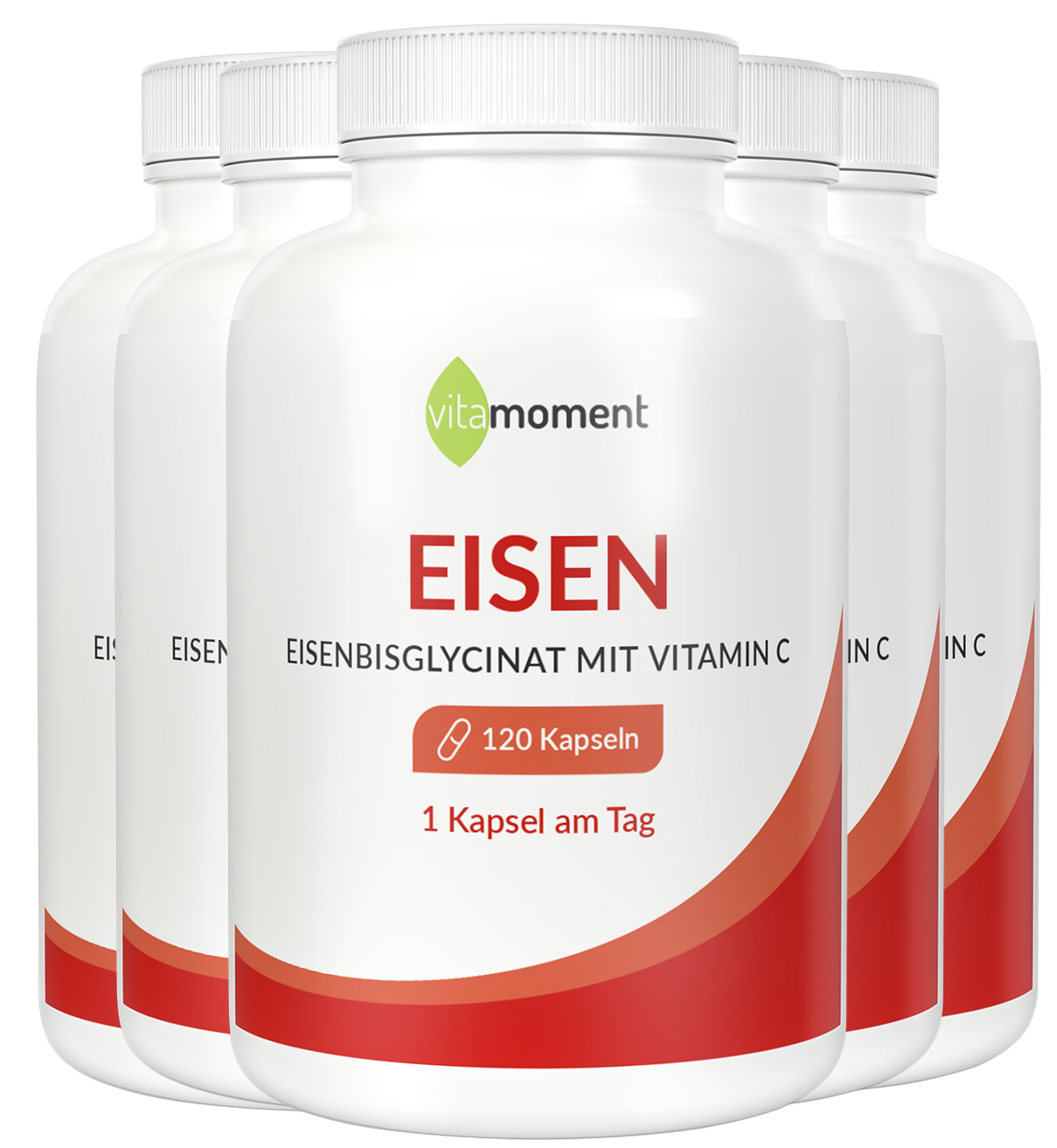 Die Eisen-Kapseln mit Vitamin C von VitaMoment stehen dir genau hierbei zur Seite, sodass unkompliziert und alltagstauglich deine Eisenversorgung optimierst und dein allgemeines Wohlbefinden maximierst.