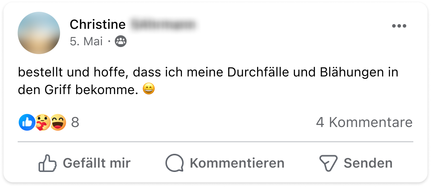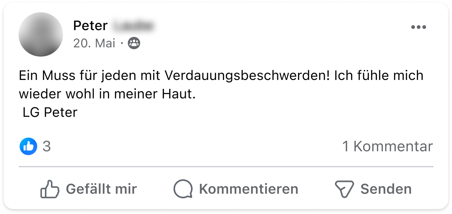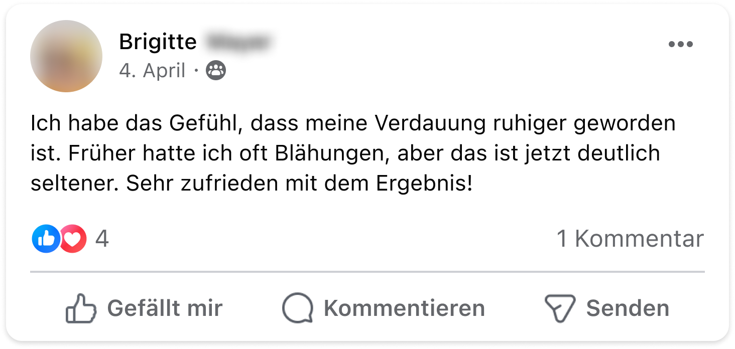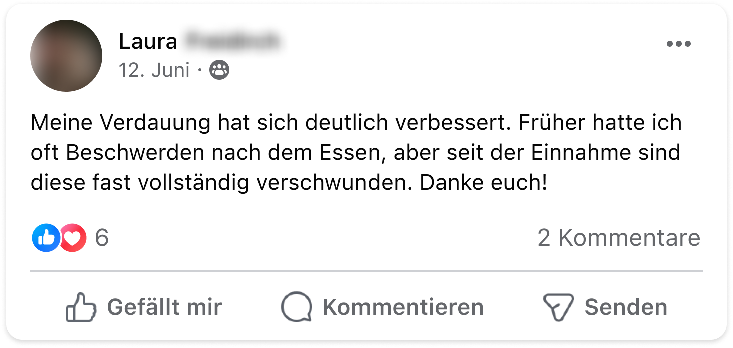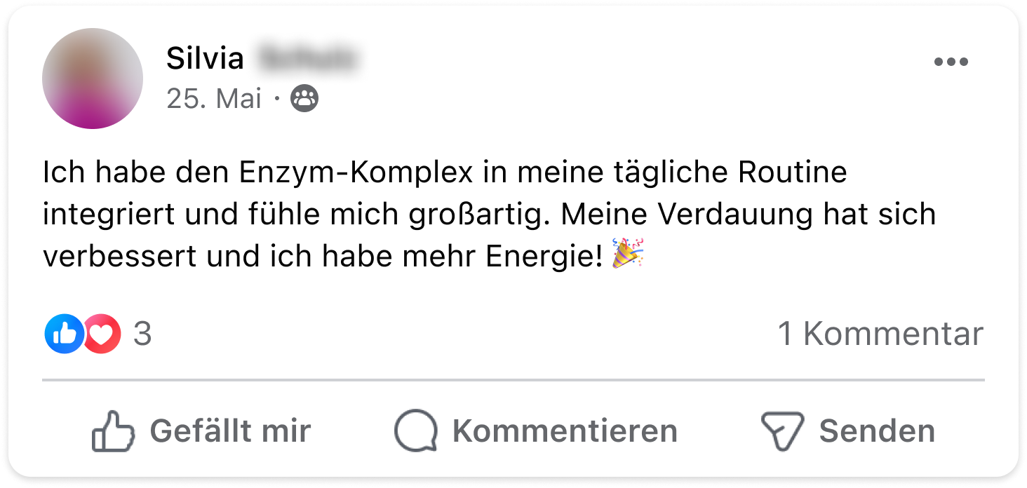 Seit ich den Enzym-Komplex nehme, sind meine Verdauungsprobleme wie Blähungen und Völlegefühl verschwunden. Fühle mich viel wohler!