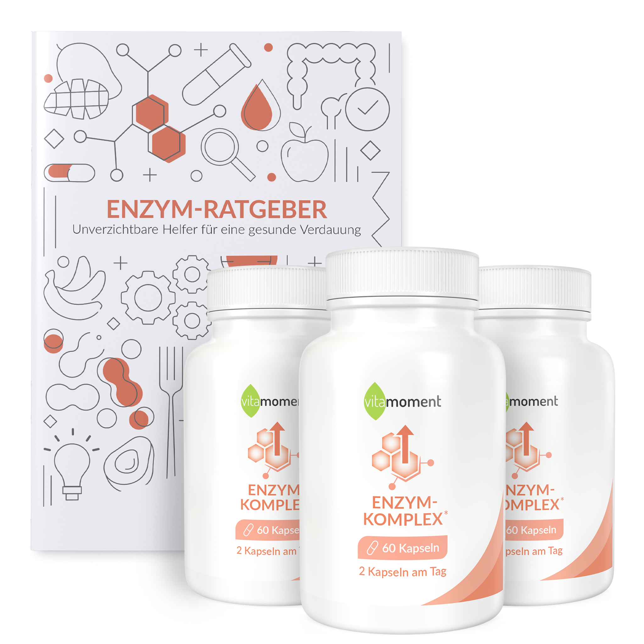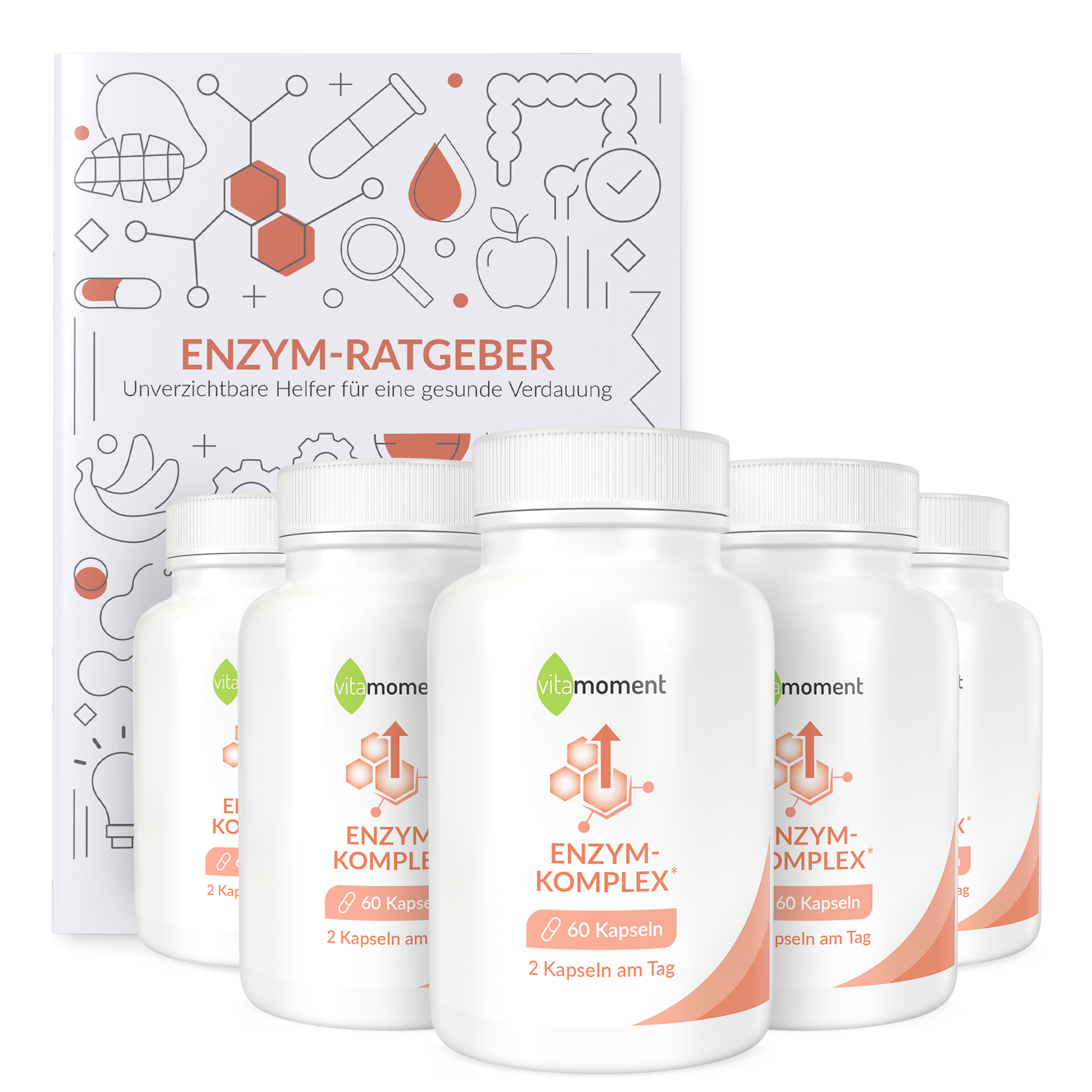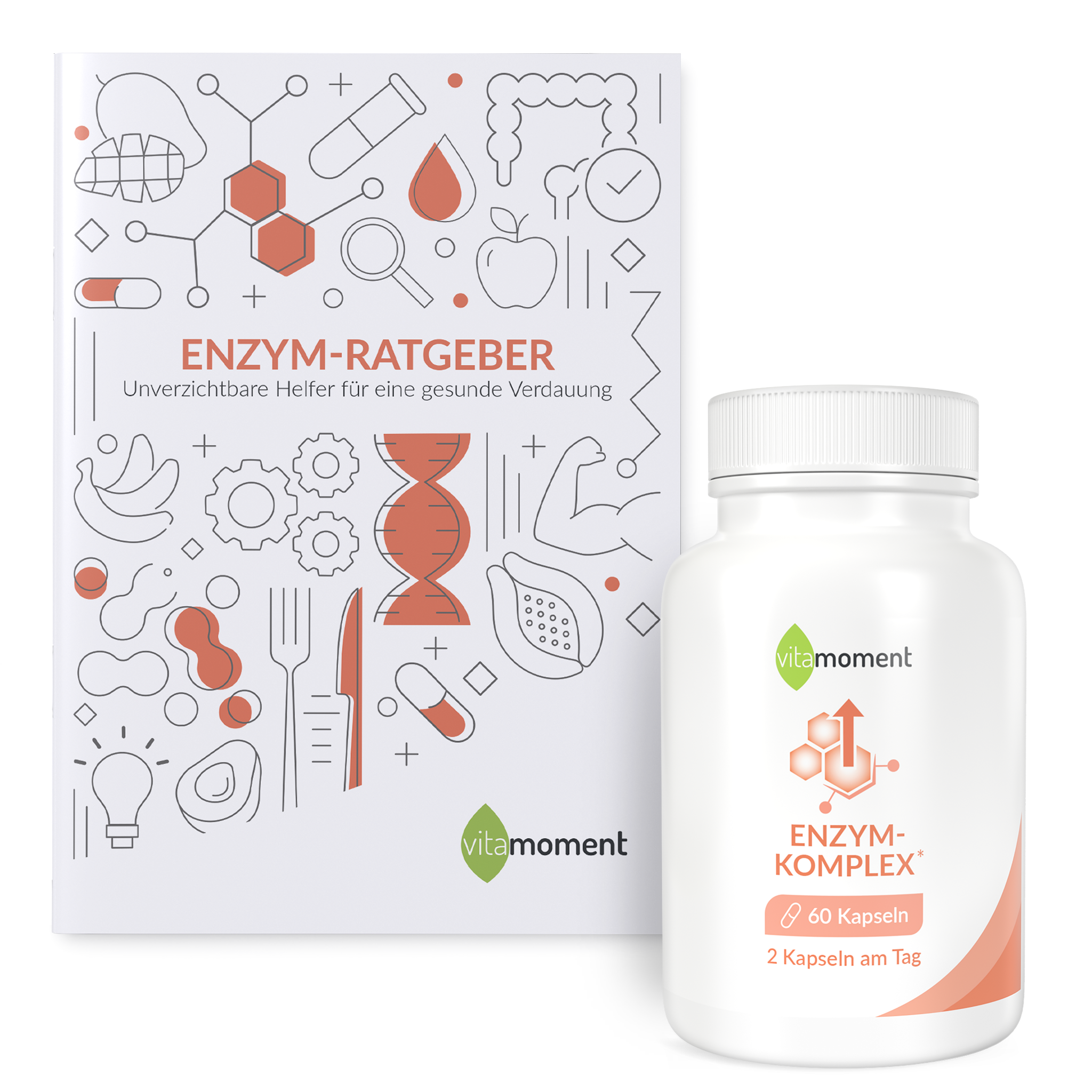 Der Enzym-Komplex von VitaMoment steht dir genau hierbei zur Seite, sodass du alltagstauglich und unkompliziert deine Verdauung unterstützen kannst.