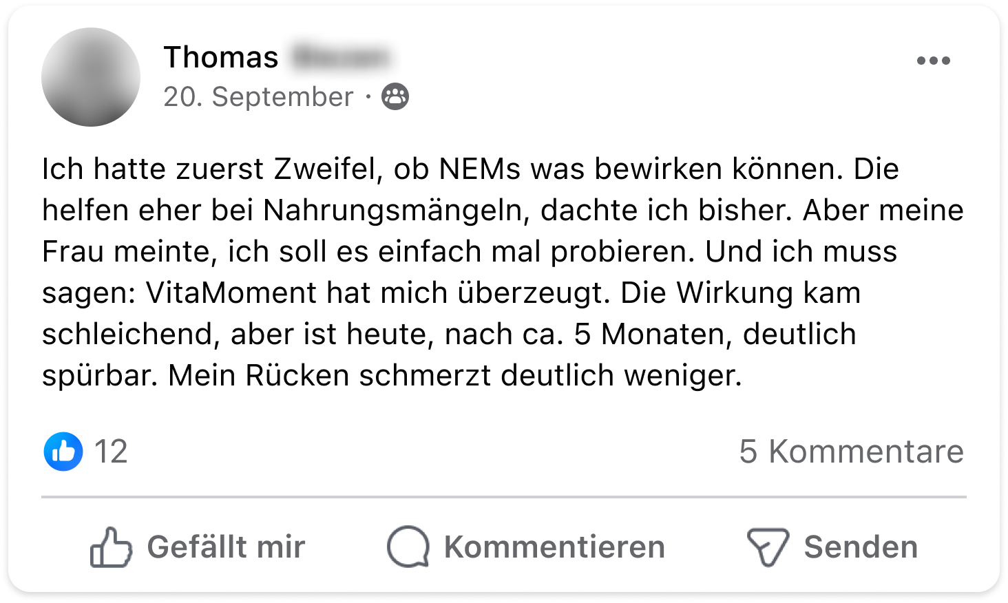 Meine Frau und ich nutzen die Produkte von VitaMoment schon seit längerer Zeit und haben sie fest in unseren Alltag integriert. In Kombination mit eiweißbetonter Ernährung helfen sie uns, den Nährstoffhaushalt im Gleichgewicht zu halten. Das Ergebnis: mehr Energie, besseres Wohlbefinden und ein echter Zugewinn an Lebensqualität. Für uns jeden Tag aufs Neue wertvoll.