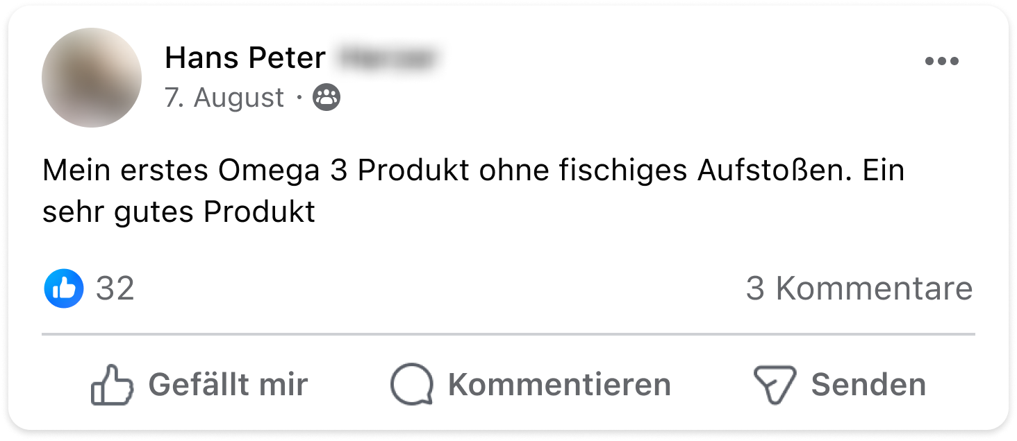 Gut verträgliches Produkt ohne unangenehme Nebenwirkungen wie z. B. Fischölgeschmack ect.