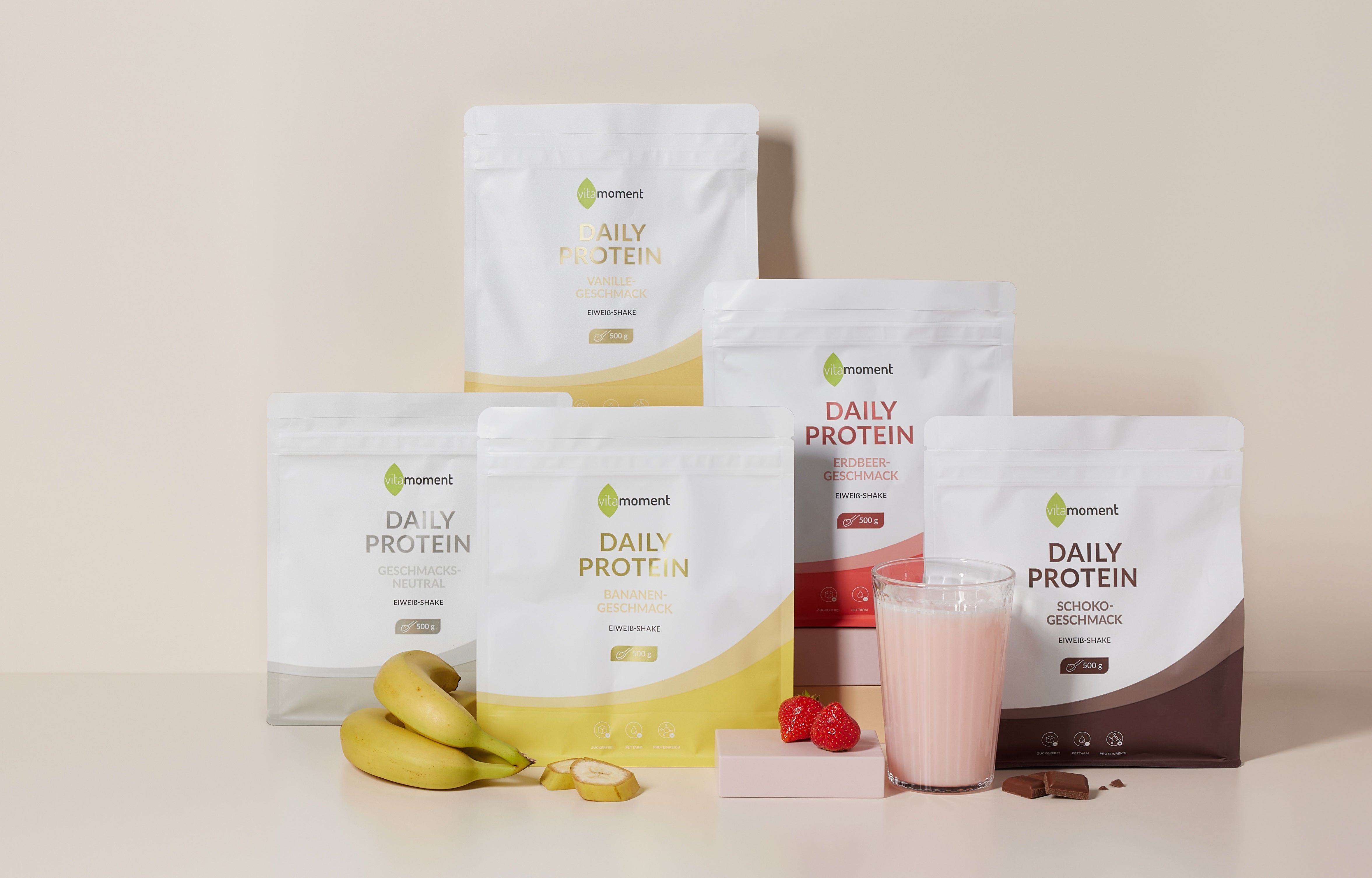 Mit dem Daily Protein Shake von VitaMoment deinen Körper rund um die Uhr mit hochwertigem Eiweiß versorgen