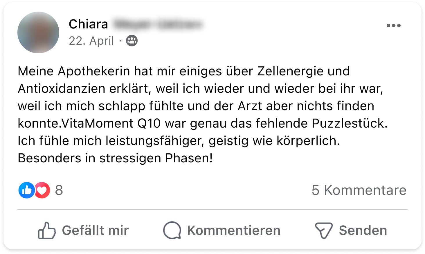 Ich war oft müde und hatte das Gefühl, dass meine Energie einfach nicht reicht. Nach ein paar Wochen mit den Q10-Kapseln von VitaMoment habe ich gemerkt, dass ich mich fitter fühle und nicht mehr so lange brauche, um mich zu erholen. Es hat sich schrittweise verbessert, und ich werde die Kapseln definitiv weiterhin nutzen.