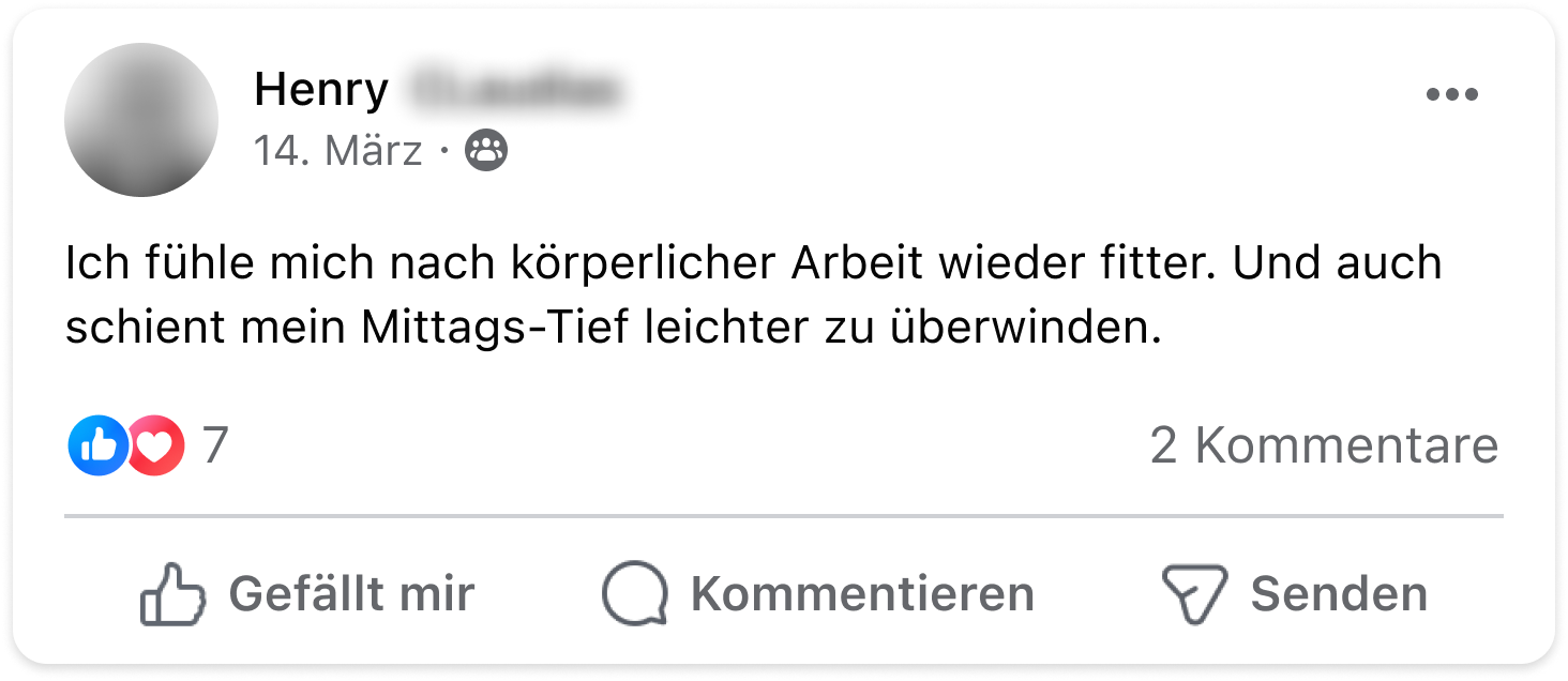 - Körperliche Belastung steckst du schneller weg und regenerierst dich zügig, ohne ständige Pausen.