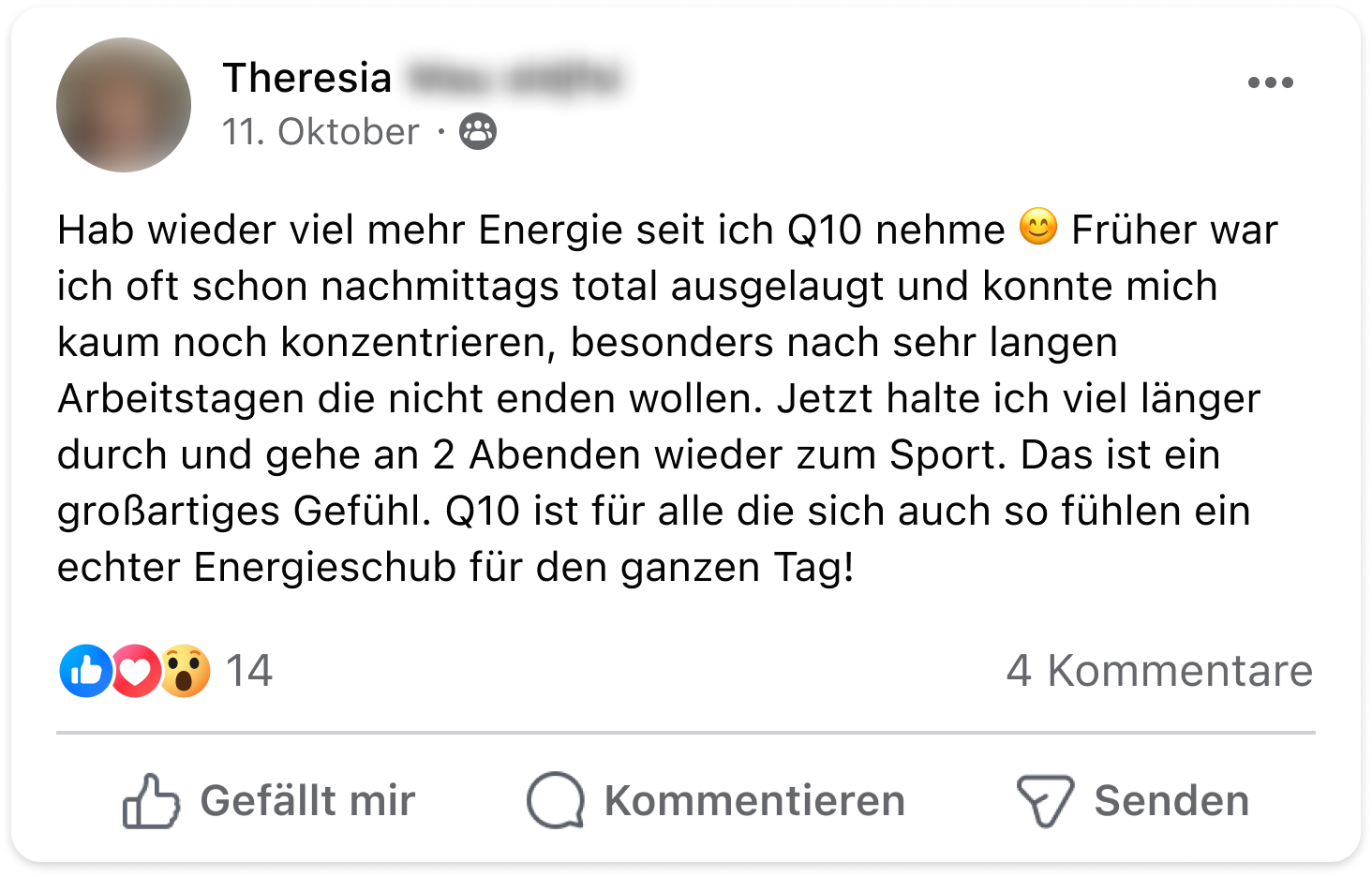 Ich war oft müde und hatte das Gefühl, dass meine Energie einfach nicht reicht. Nach ein paar Wochen mit den Q10-Kapseln von VitaMoment habe ich gemerkt, dass ich mich fitter fühle und nicht mehr so lange brauche, um mich zu erholen. Es hat sich schrittweise verbessert, und ich werde die Kapseln definitiv weiterhin nutzen.