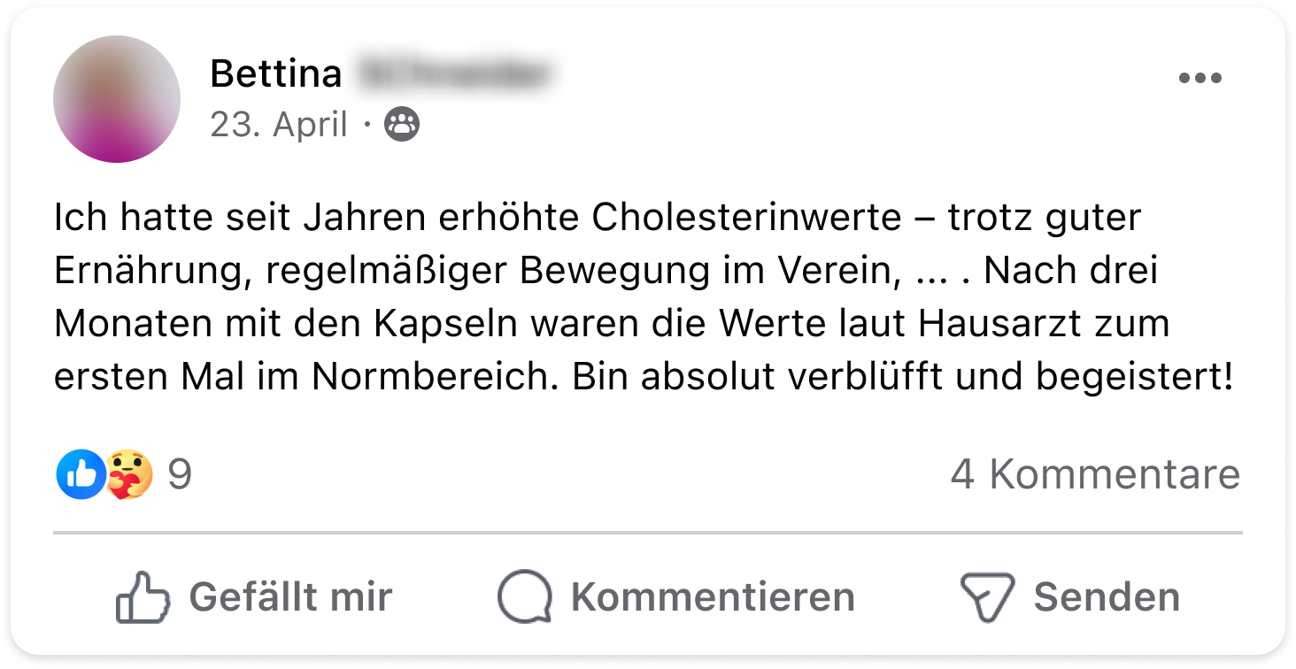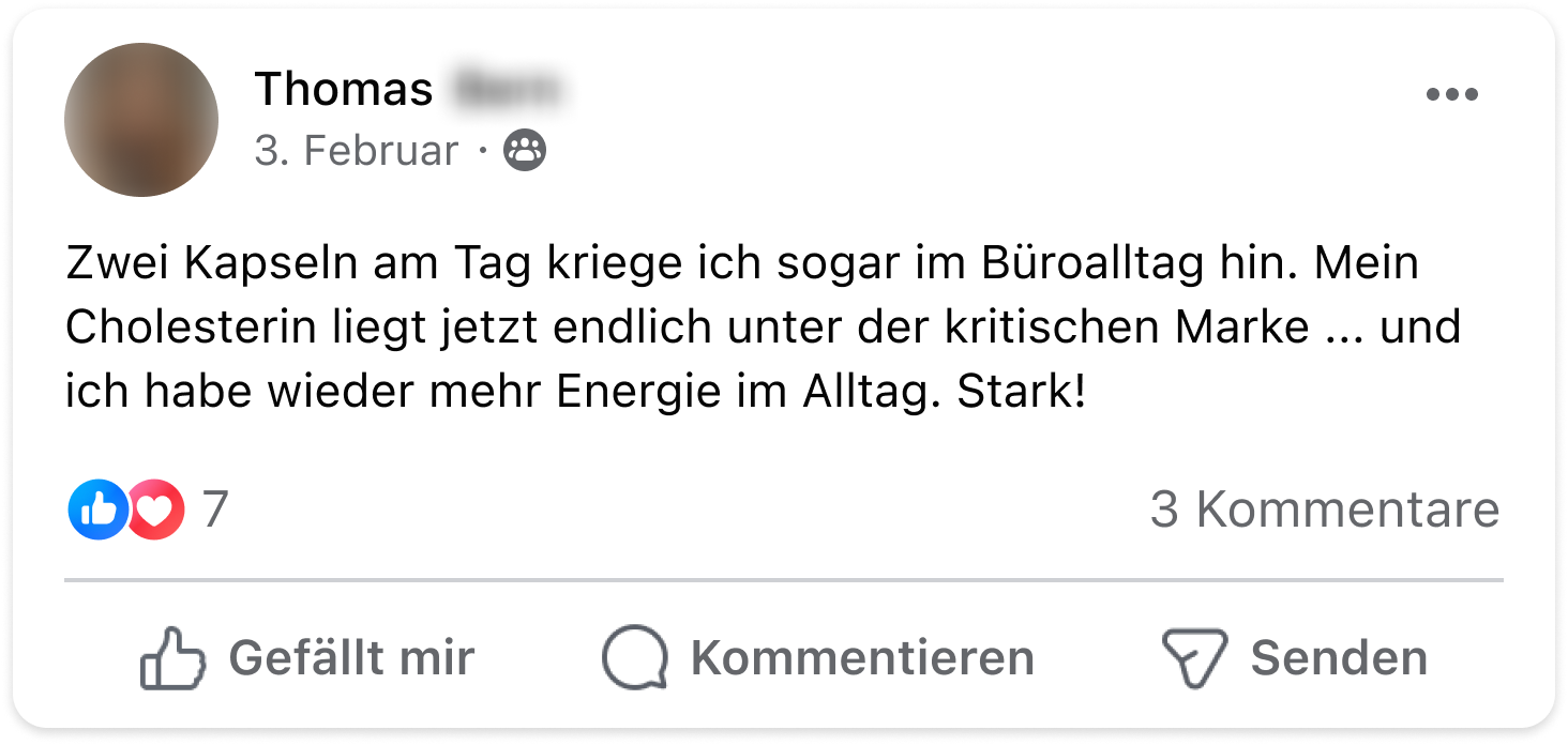 - Du nutzt die Kraft eines natürlichen Pflanzenstoffs, um deine Cholesterinwerte sanft und wirksam ins Gleichgewicht zu bringen – ganz unkompliziert und ohne Aufwand.