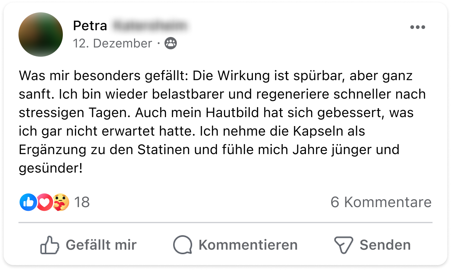 Disclaimer: Dieses Produkt ist nicht zur Diagnose, Behandlung, Heilung von oder zur Vorbeuge vor Krankheiten bestimmt. Die Ergebnisse können variieren / sind eventuell nicht typisch. Bewertungen oder Testimonials sind individuelle Erfahrungsberichte unserer Kunden. Diese Informationen stellen keine medizinische Beratung dar und dürfen auch nicht als eine solche verstanden werden. Sprich bitte mit deinem Arzt, bevor du dein regelmäßiges, ärztlich vorgeschriebenes Behandlungsverfahren änderst. Nahrungsergänzungsmittel sind kein Ersatz für eine ausgewogene und abwechslungsreiche Ernährung und eine gesunde Lebensweise. Das Bildmaterial unserer Kundenfeedbacks wurde aus Gründen des Persönlichkeitsrechts z.T. lizensiert erworben und entspricht nicht immer dem echten Erscheinungsbild.