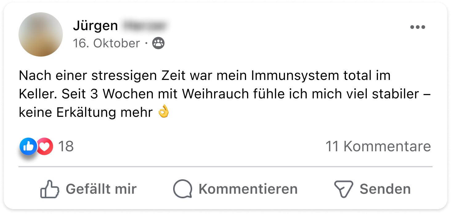 Wird dein Körper dauerhaft von stillen Entzündungen belastet, kann das dein Immunsystem schwächen und deine Lebensqualität deutlich einschränken. Weihrauch liefert natürliche Pflanzenstoffe, die deine Abwehrkräfte stärken und deine Gelenkgesundheit auf sanfte Weise unterstützen.
