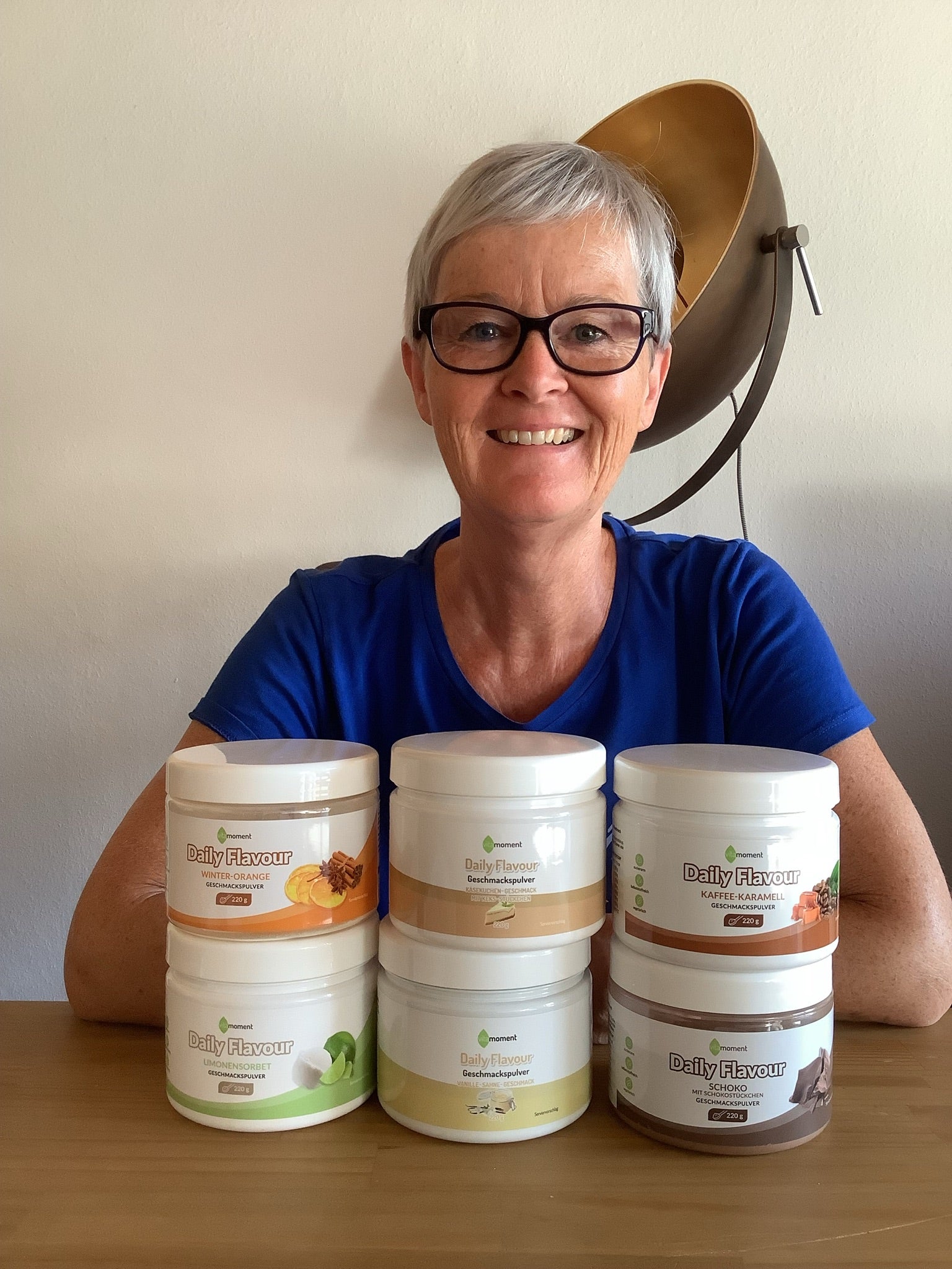 Hallo, ich bin Corinna und absolut begeistert von Daily Flavour! Es hilft mir, Kalorien zu sparen, ohne zu verzichten – mein Eisjeper ist im Nu weg, wenn ich es in Joghurt rühre. Ich habe schon einige Kilos verloren und fühle mich richtig wohl. Mein Highlight: die Sorte Winterorange mit Zimt – einfach himmlisch!