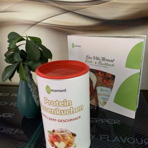 Ich bereite mir solch kleinen Tassenkuchen gern mal zwischendurch zu, die Sorte Apfel- Zimt schmeckt mir gut und macht satt. Leider bleibt das Küchlein ( Mikrowelle zubereitet ) im... Aussehen immer sehr hell, etwas dunkler sehe appetitlicher aus, ist aber nur meine persönliche Meinung. Trotzdem klare Empfehlung 😃👍🏻🌺 Toll sind die Aktionen von VitaMoment, so bekam ich einen Gutschein für das Koch- und Backbuch welches auf dem Foto zu sehen ist.