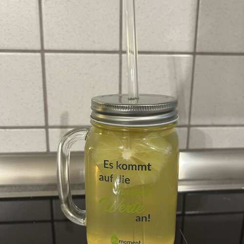 Das schön dekorierte Glas gefällt mir sehr gut und ist jeden Tag im Einsatz! Den Deckel finde ich sehr nützlich somit bleibt auch alles sauber.